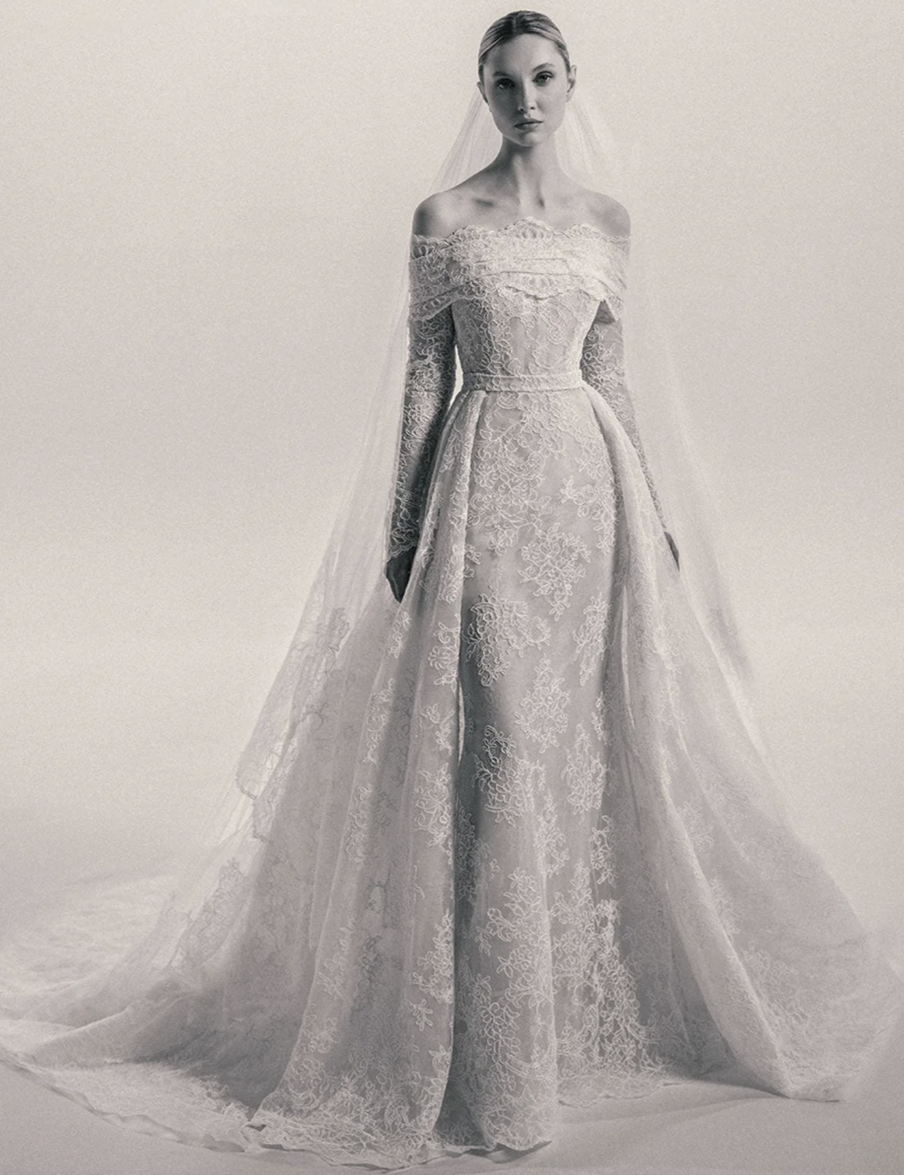 From luscious fabrics of abundance to silhouettes of golden proportions, Elie Saab Bridal Fall 2023 captures the gestures of Ancient Greece to create a collection of mythical proportions. Each regal gown is carefully crafted to enhance the aesthetics of symmetry, balance, and harmony, inspiring a sense of awe. Sumptuously draped mikado enfolds natural forms with buttoned floral bursts, while Chantilly lace blossoms across sweetheart necklines and translucent sleeves into revealing open-back ballgowns.